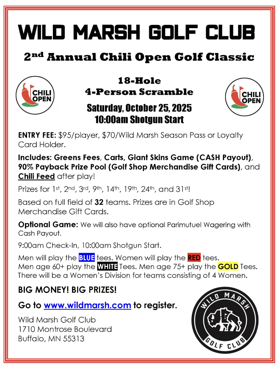 TCG October 17, 2025 Wild Marsh Golf Club hosting 2025 Chili Open Golf Classic on Saturday October 25 TCG October 17, 2025