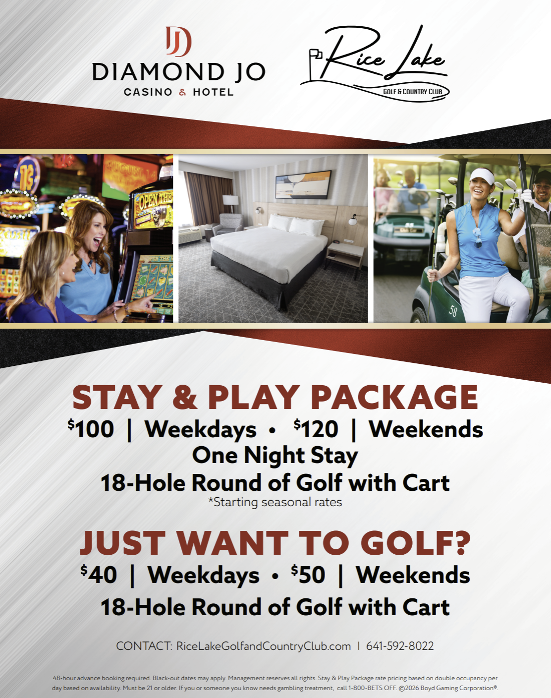 TCG February 12, 2026 Stay & Play Package at Rice Lake Golf & Country Club and Diamond Jo Casino & Hotel TCG February 12, 2026 Learn more